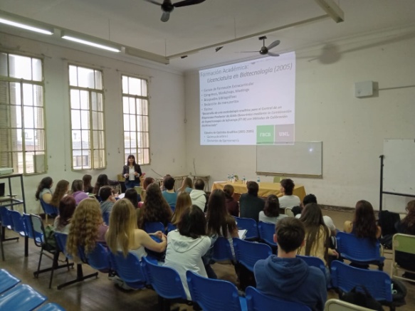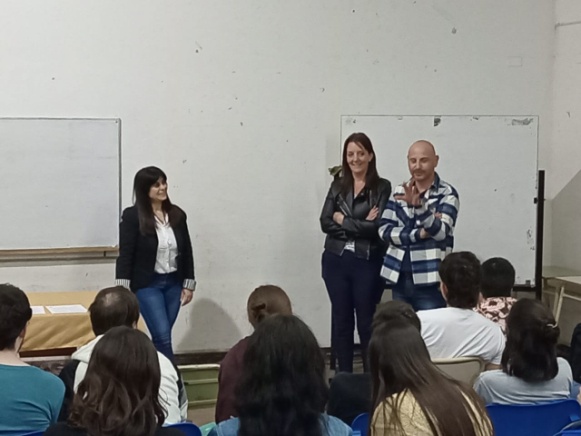 Estudiantes de 3ero y 4to año de la carrera de Traductorado/Interpretariado en medio de la charla.