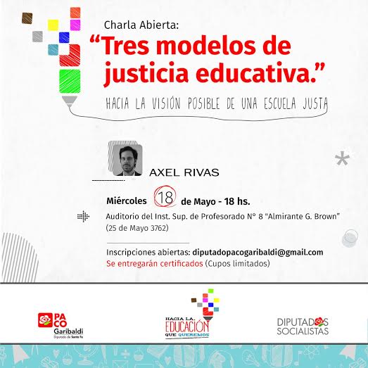 Lunes, 16 Mayo 2016 11:04 Charla abierta tamaño de la fuente disminuir el tamaño de la fuente aumentar tamaño de la fuente Imprimir Email "Tres modelos de justicia educativa" Twitter Visto 1934 veces Más en esta categoría: « Taller de Herramientas Informáticas para Traductores de 4to. Año. GRAN FIESTA CÍVICA » volver arriba