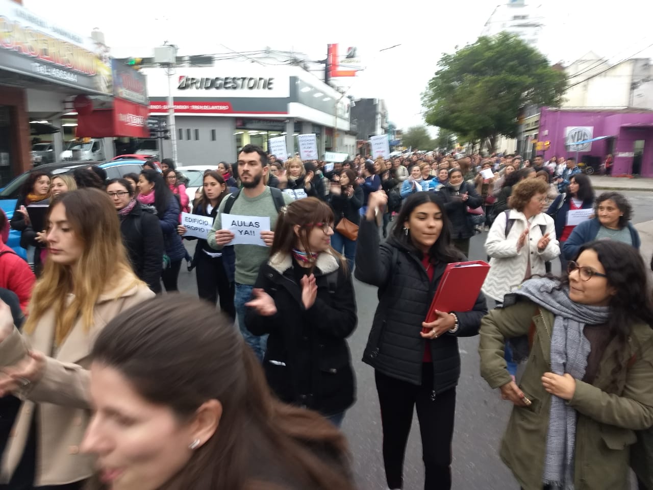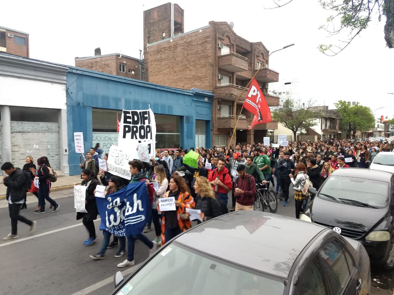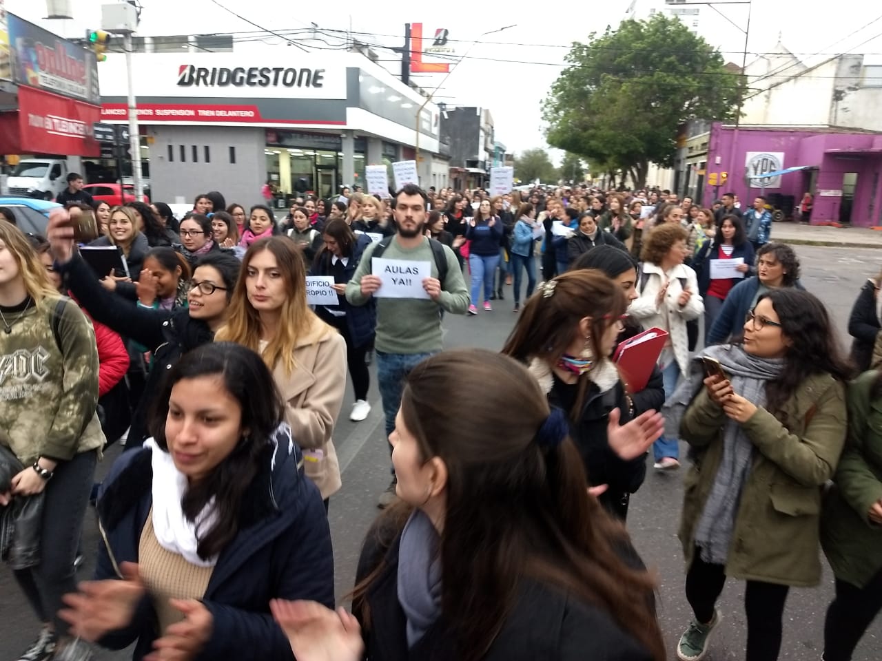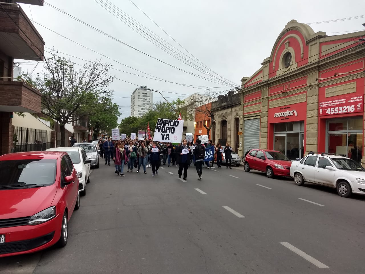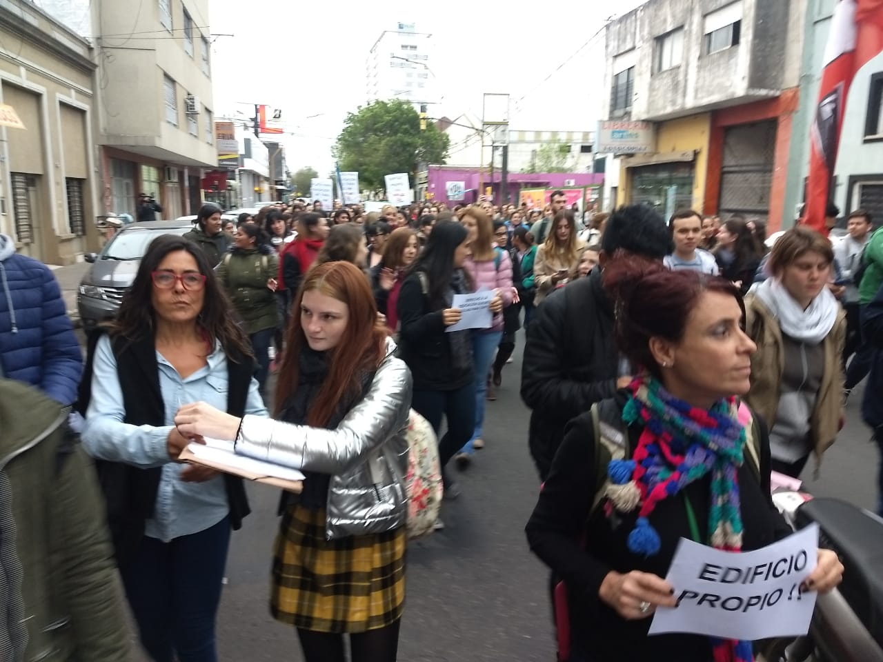 En el marco de la lucha por condiciones edilicias acordes a las 14 carreras de nivel superior y los cursos de la Escuela Preparatoria de Idiomas Extranjeros que dicta el ISP8 en 25 de Mayo 3762 -que compartimos con dos instituciones públicas: Escuelas 331 y 1250-, en San Gerónimo 2721 de Santa Fe y en el Anexo de Esperanza, resuelta en la Asamblea de la Comunidad Educativa del 25 de Septiembre pasado, se realizó la marcha prevista con importante concurrencia y adhesiones. Se hizo presente la comunidad toda de nuestro instituto y estuvimos acompañados por AMSAFE, docentes y estudiantes de los institutos N° 32 "Gral. San Martín", N° 12 "Gastón Gori", la Escuela de ArtesVisuales "Juan Mantovani" y el Instituco de Cine y Artes Audiovisuales, numerosas agrupaciones estudiantiles, ASORSAFE, la organización Mirame Bien y vecinos de nuestra institución.