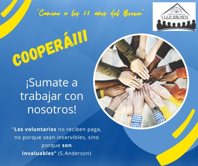 Te invitamos a formar parte del 1º Organismo Coordinador (Según lo establece el Art. Nº 6 del Estatuto Vigente) que llevará adelante los diferentes eventos y actividades pensadas camino a los “55 años del Brown” y que tienen por objetivo recaudar fondos para el buen desenvolvimiento de esta Asociación Cooperadora.