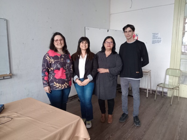 De izquierda a derecha: Trad. Perla Hassan (Regente de Idiomas), Dra. Vanina Franco, Trad. Claudia Ruiz Díaz y Trad. Martín Muller (docente y adscripto de la cátedra Traducción científica y técnica I)
