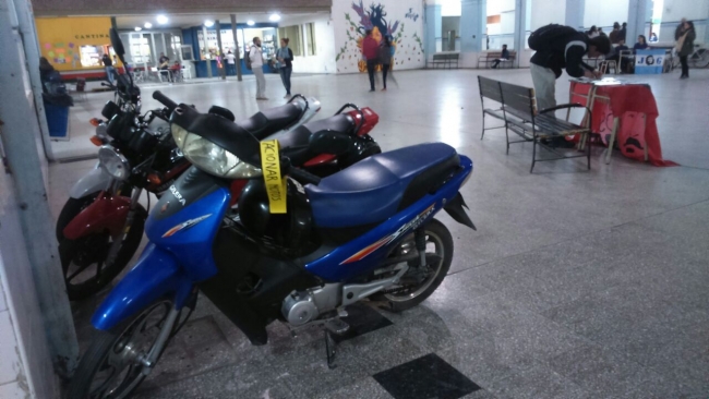 El patio de nuestro instituto es un espacio para todxs lxs que compartimos el edificio. No es un estacionamiento de motos ni bicicletas.